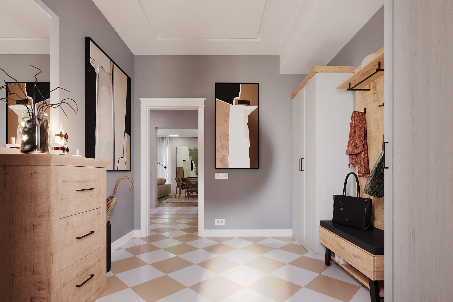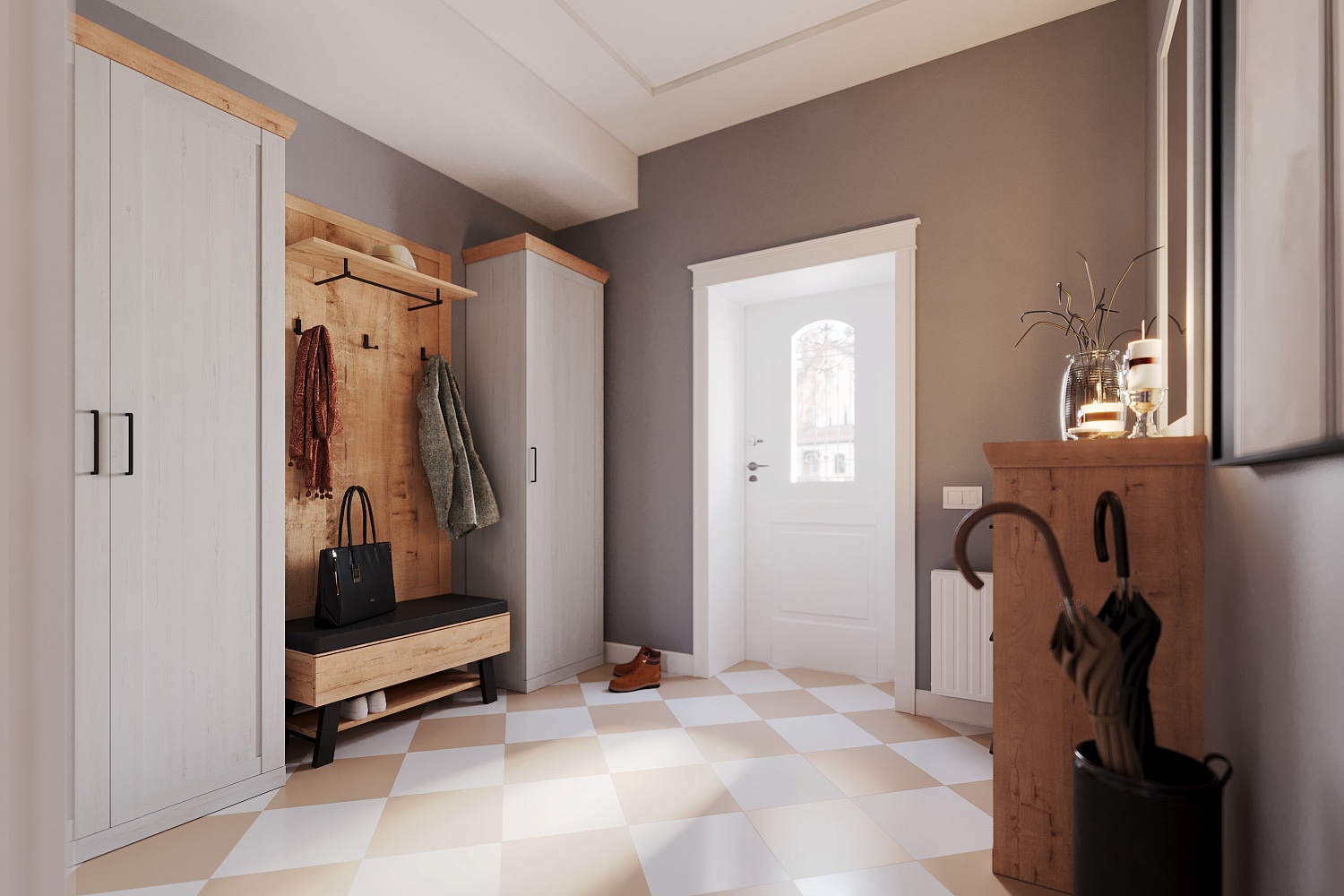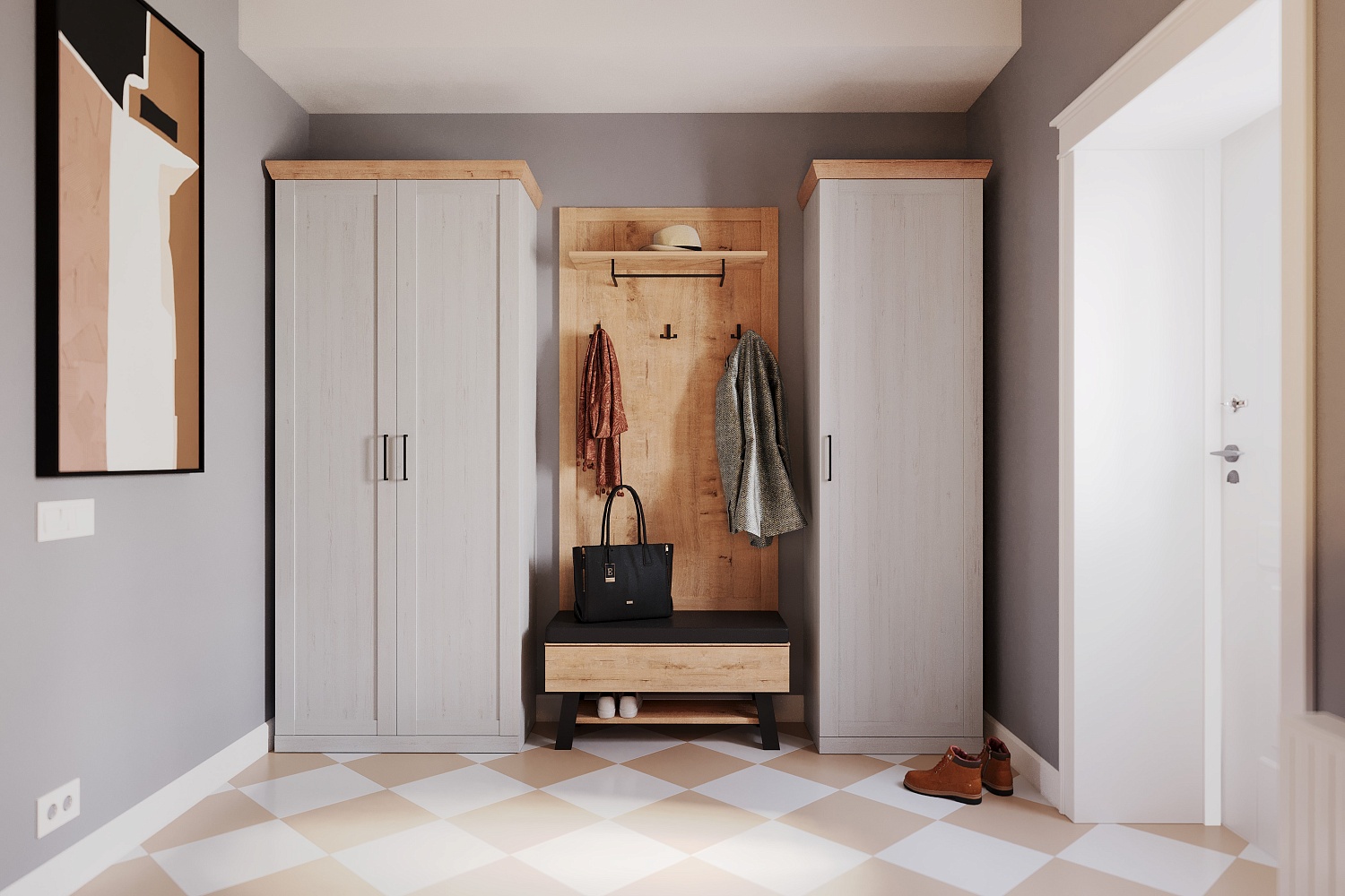 – описание: назначение для прихожей, цвет дуб бунратти, блан шене, стиль современный, минимализм.