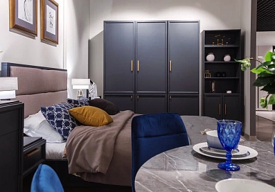 - Шкаф с двумя распашными фасадами и двумя выдвижными ящиками;